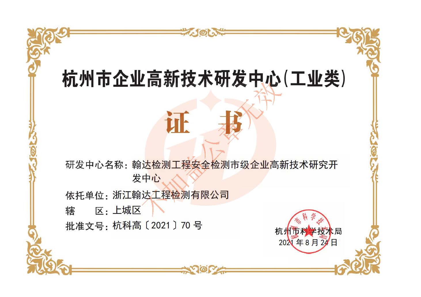 杭州市企業(yè)高新技術(shù)研發(fā)中心